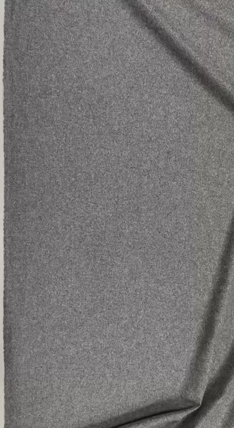 Dieser edle Wollstoff in Mittelgrau überzeugt durch seine weiche, leicht angeraute Oberfläche und den dezenten Melange-Effekt, der dem Material eine elegante Tiefe verleiht.