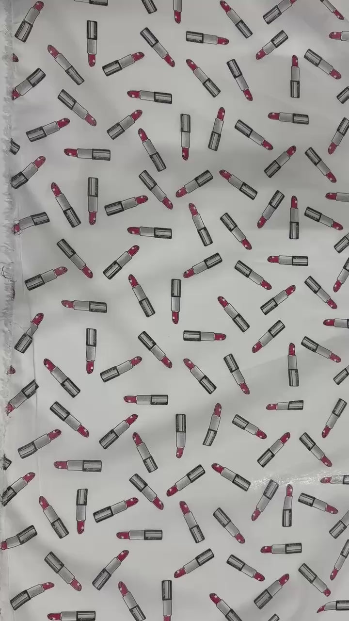 This elegant cotton fabric features a white, transparent base, subtly translucent with delicate lipstick motifs. The subtle transparency lends the fabric a sophisticated lightness, perfect for elegant and stylish creations. The high-quality cotton guarantees a comfortable feel and long-lasting quality. Ideal for sophisticated designs with a touch of subtle sensuality.