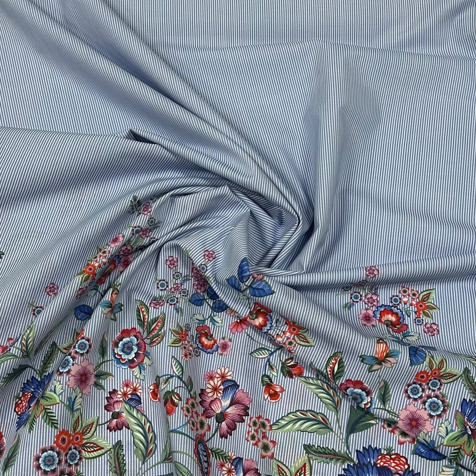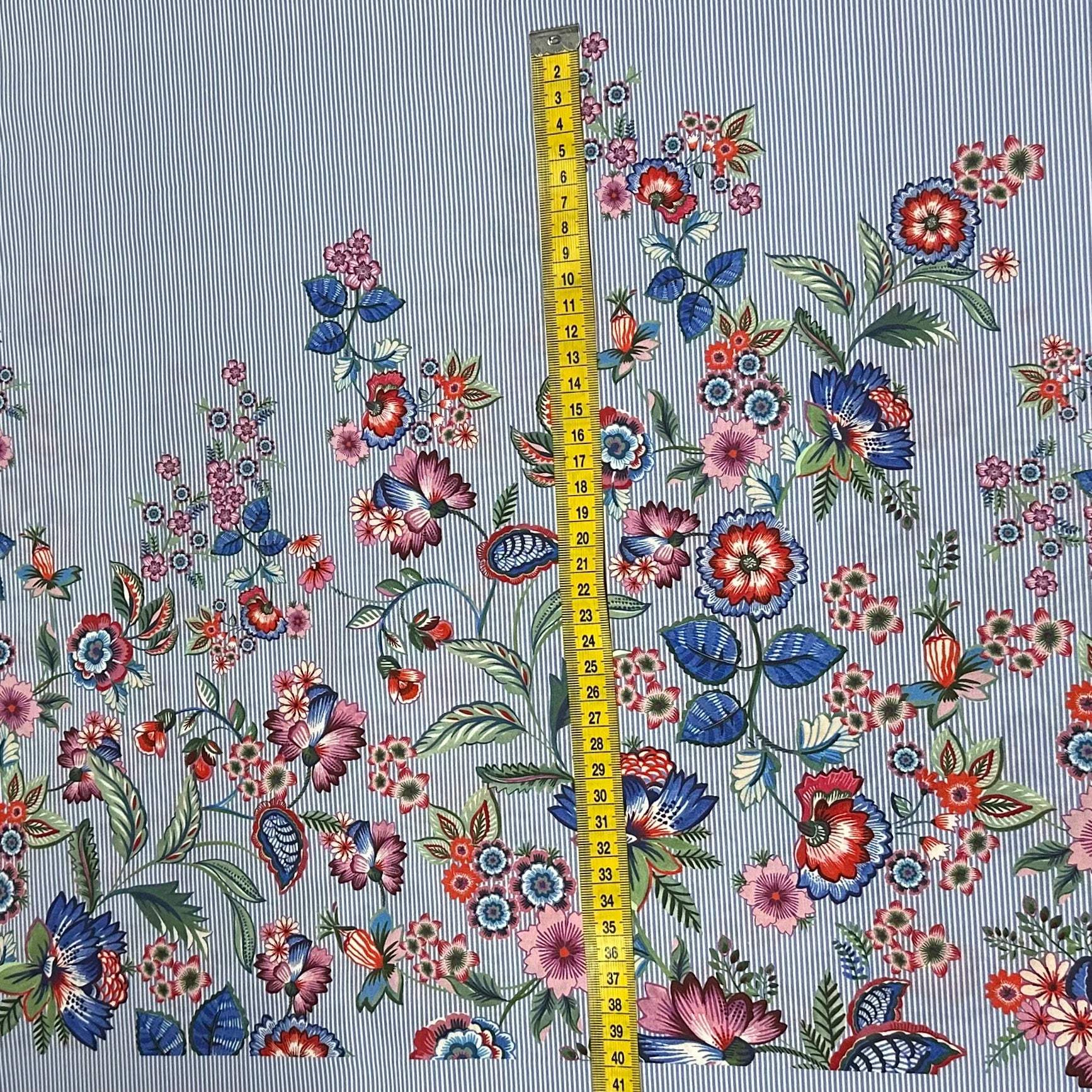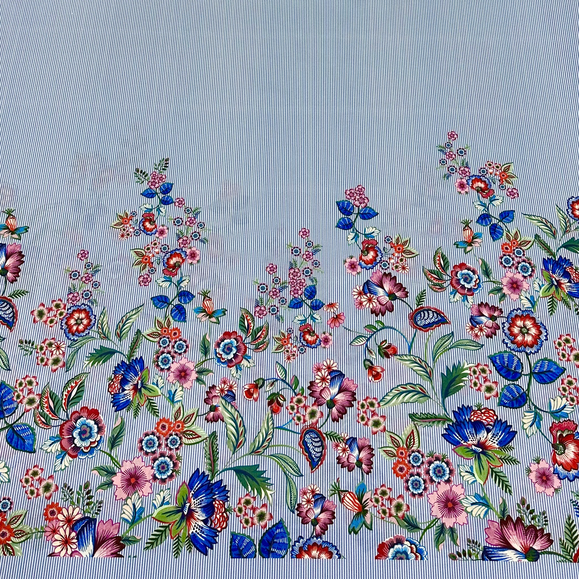 Gestreifter Bordürenstoffpaneele mit Blumen | Baumwolle