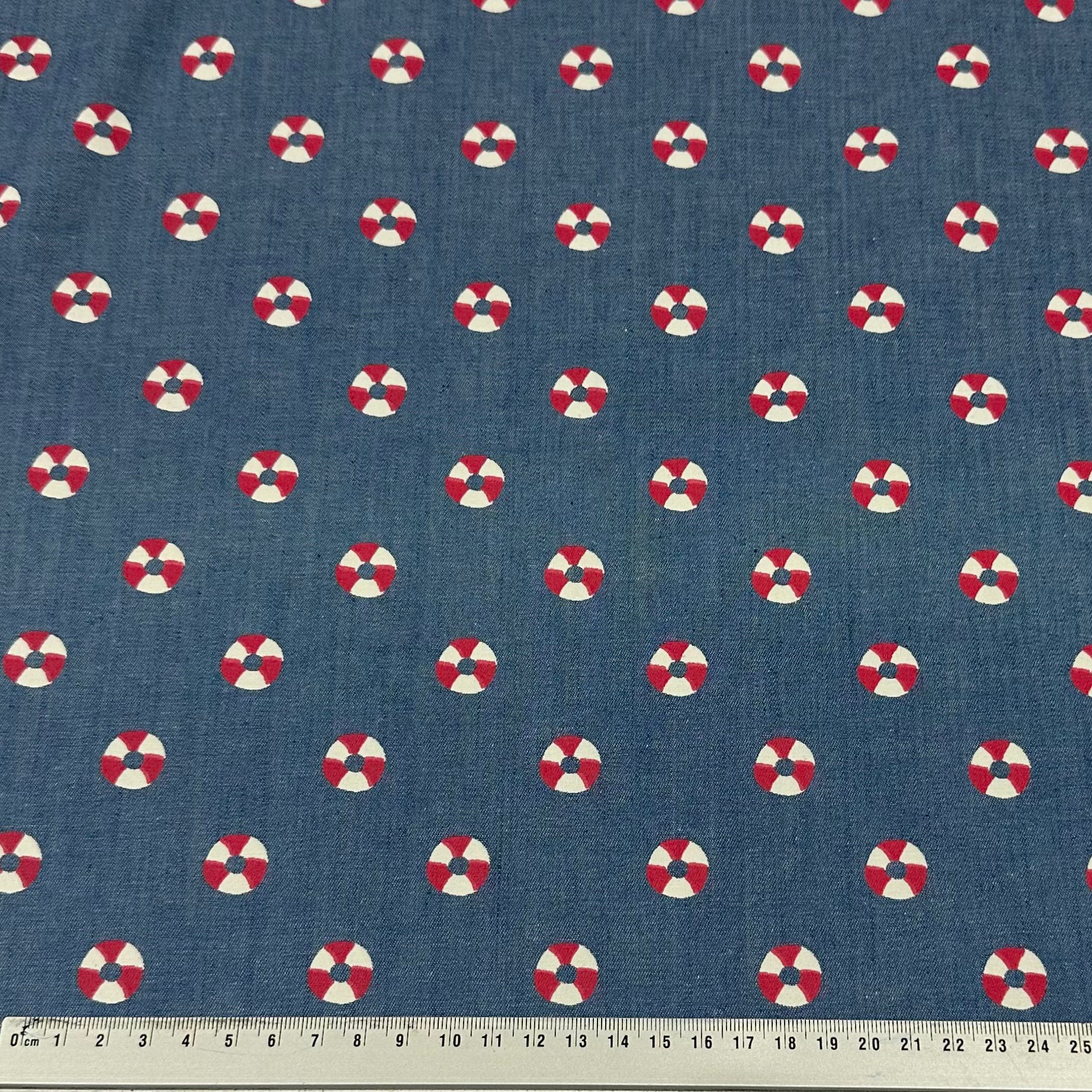 Nautic Denim - Jeansstoff mit maritimen Rettungsringen | Baumwolle