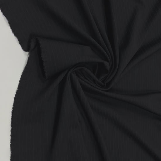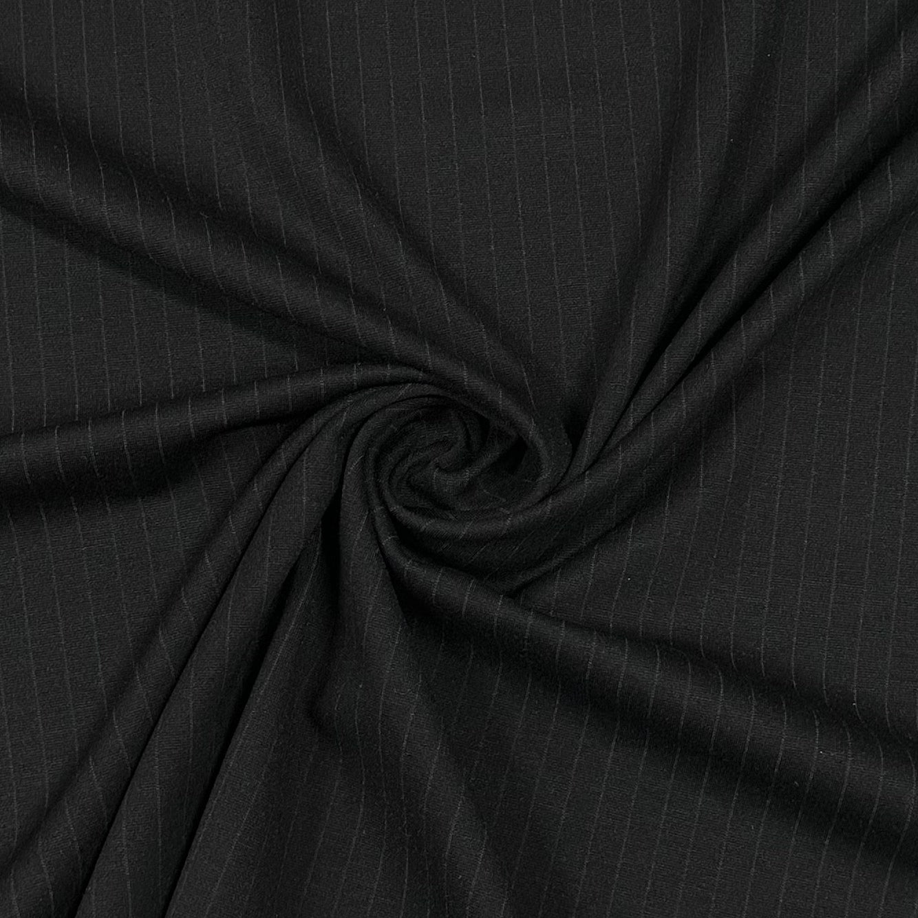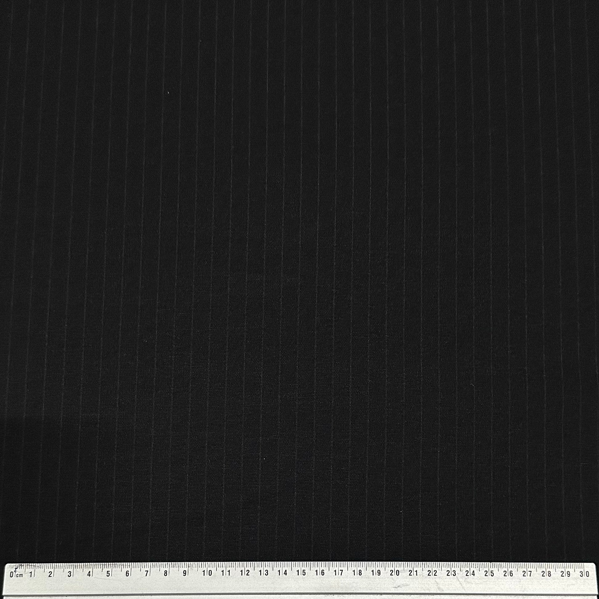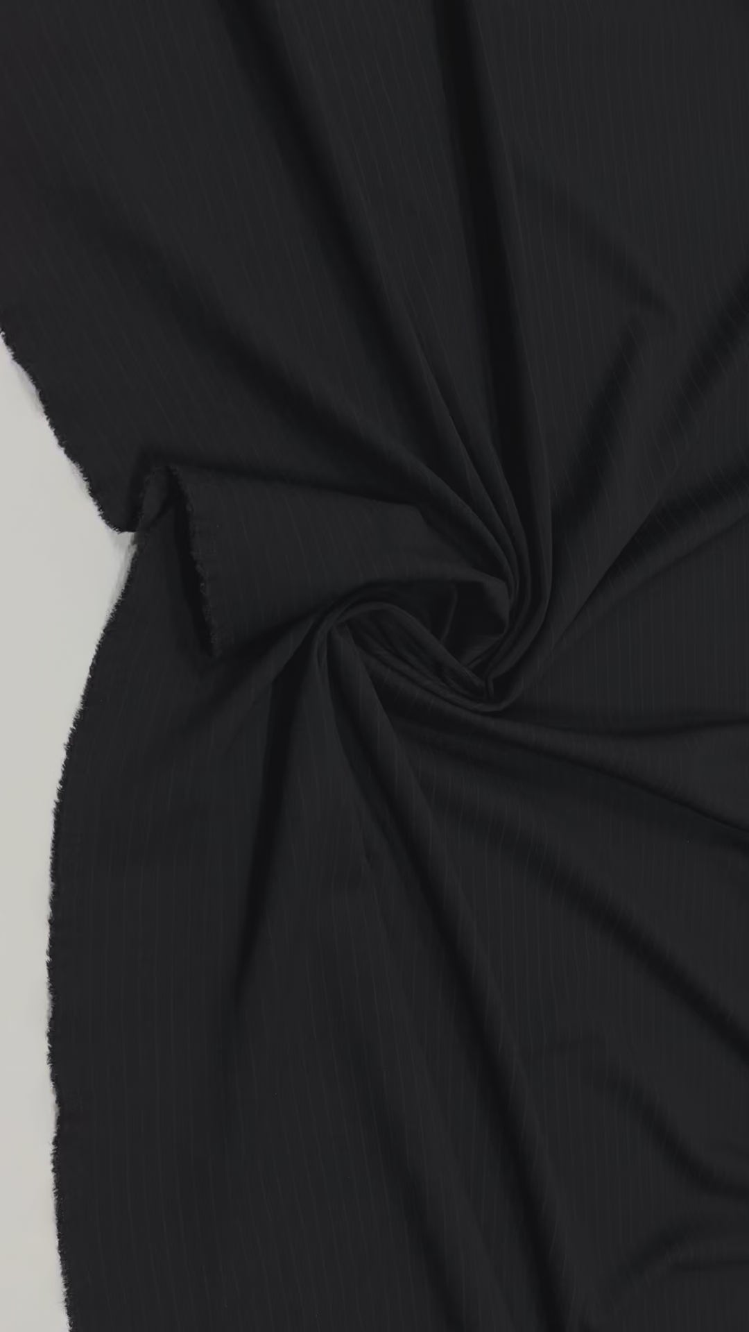 Dieser elegante schwarze Nadelstreifen-Stoff besteht aus Punto Milano Material. Durch seine besondere Webart lässt er sich zu stilvollen Kleidungsstücken verarbeiten, die sowohl elegant als auch zeitlos wirken. Perfekt für Business- oder Abendgarderobe.
