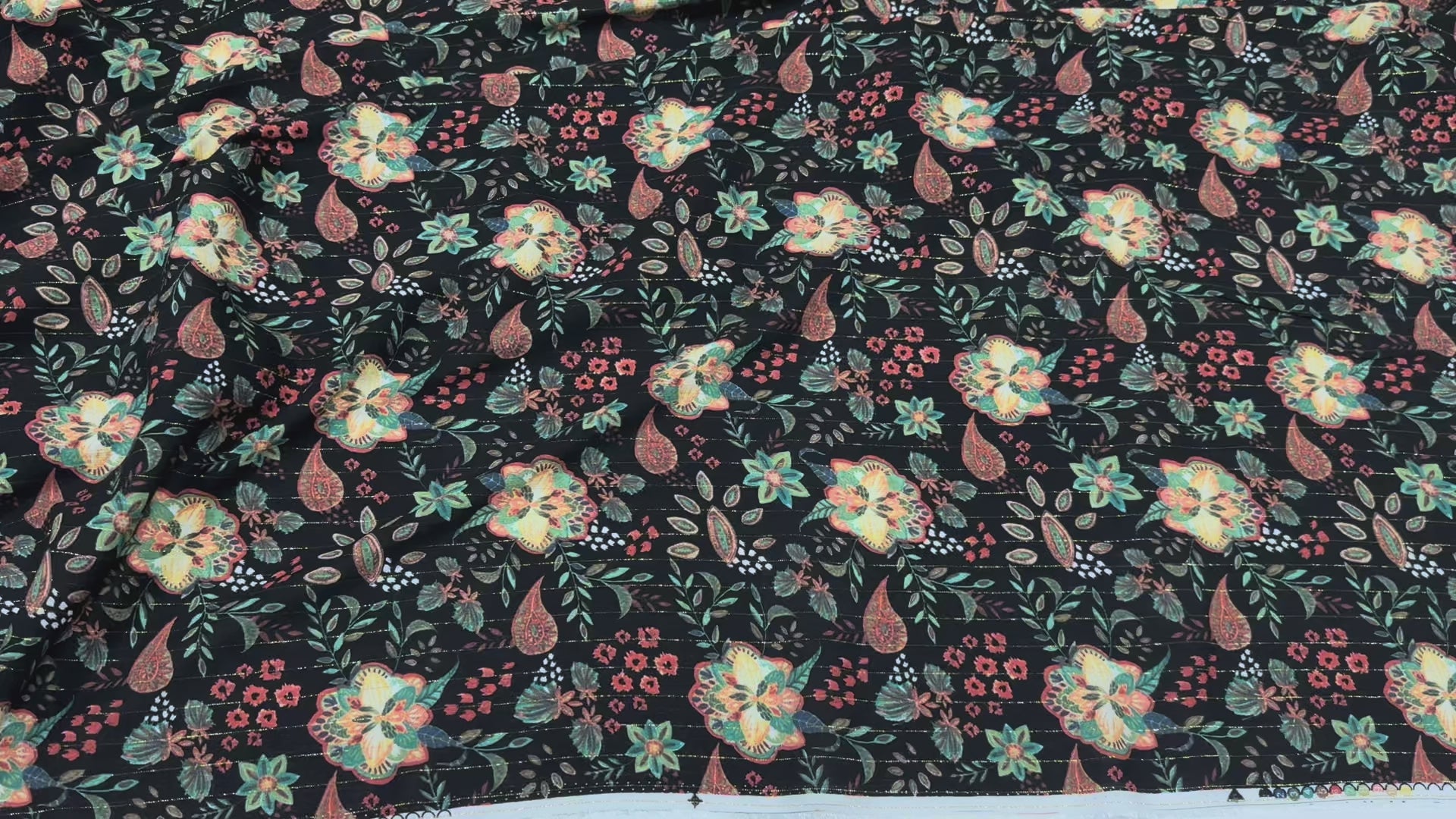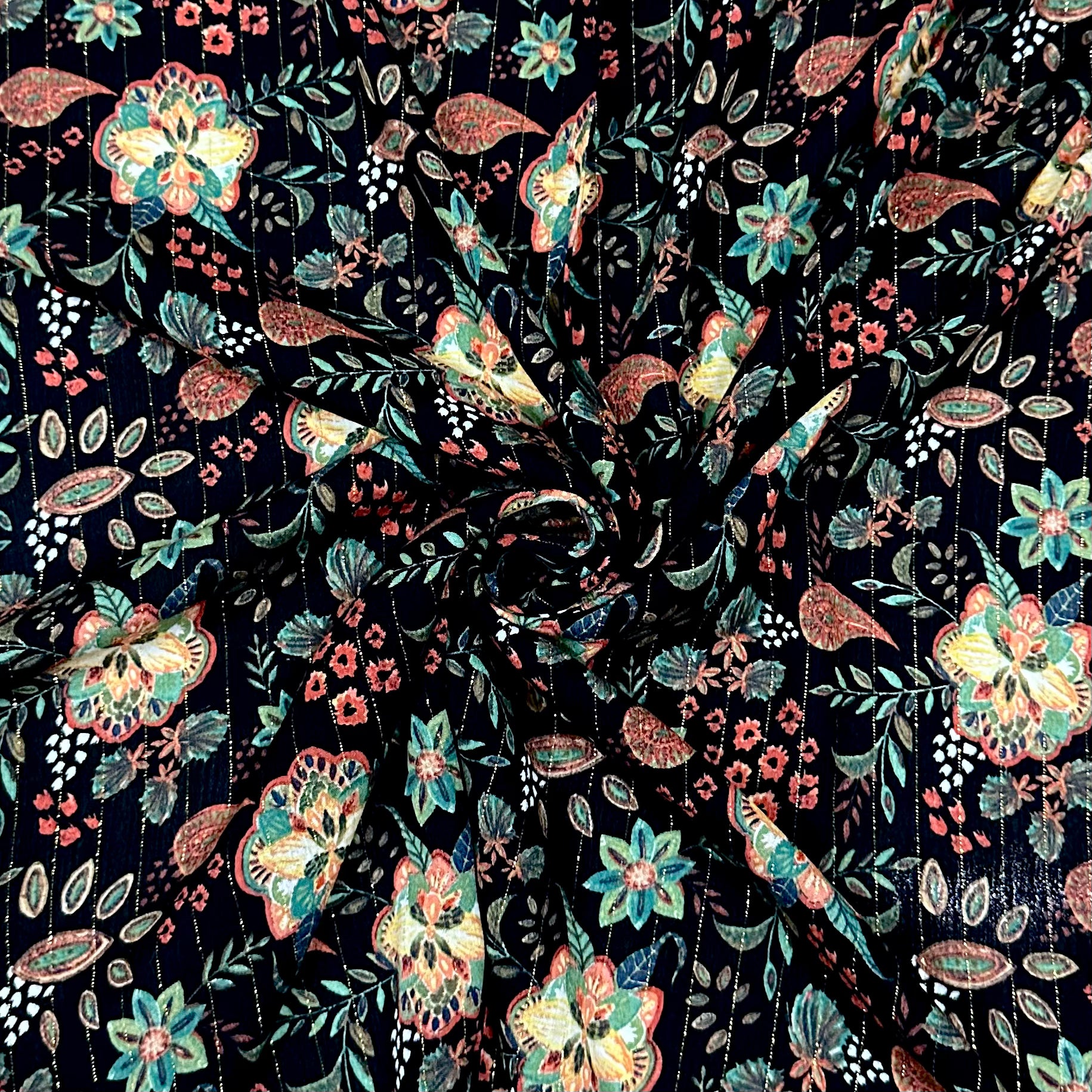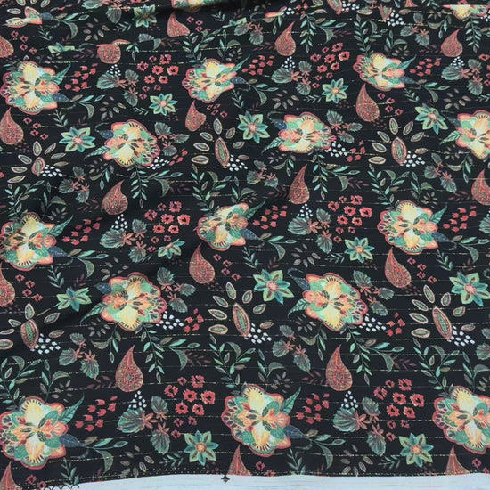 Ein wunderschöner Boho-Blumenstoff, kombiniert florale Elemente mit dezenten Paisley-Details, was dem Stoff einen leicht orientalischen Vintage-Look verleiht.